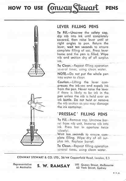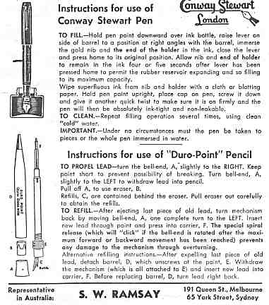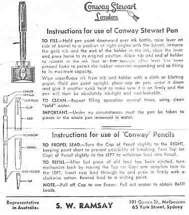 Three Instruction Sheets for Conway Stewart Writing Set Guarantees that indicate changes to the pencil designs and naming/numbering with time, allowing approximate dates of the sheets to be determined. Strangely the pen indicated on each sheet remains unchanged although the design is only really correct for the first sheet.