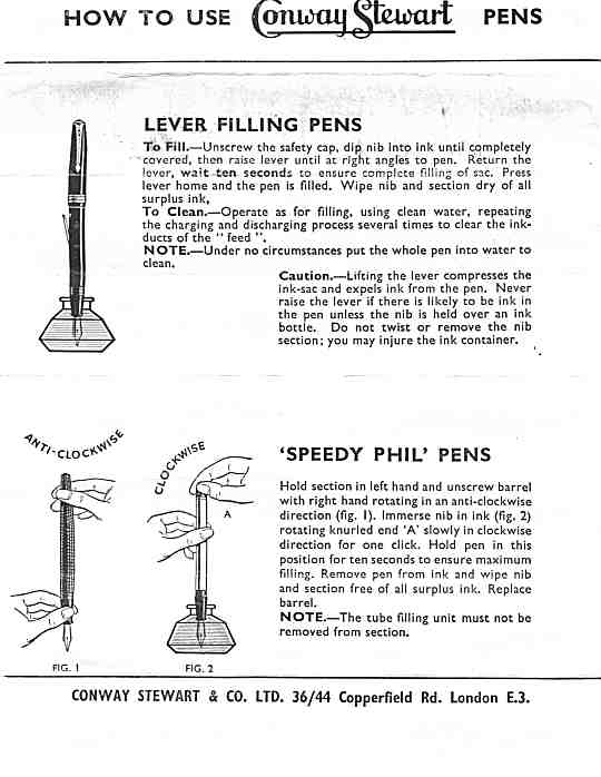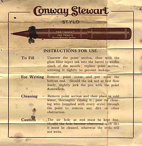 English Instruction sheets in approximate date order. Note the very subtle differences in the type set used in the cases of the pairs of Instruction sheets for the two types of Ink Pencil.