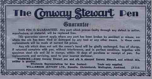 Note that the New Zealand Guarantees were generally identical to the English versions, unlike the Australian ones, with the exception of the two immediately below. New Zealand Conway Stewart items generally have the New Zealand agent's details on the instruction sheet side.
